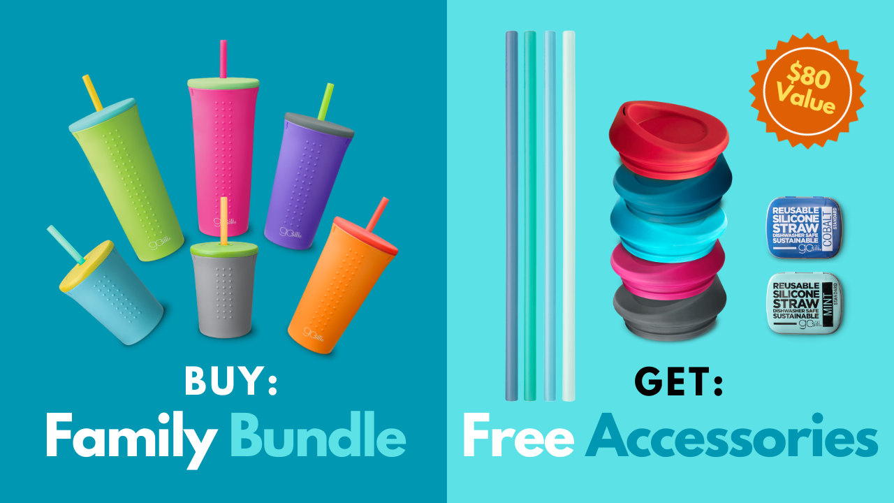 New year, new sustainable cups! Our interchangeable lids and straws are compatible with all cup sizes. Mix and match to create your perfect combo. For a limited time, buy our Family Cup Bundle and receive an accessory bundle free!